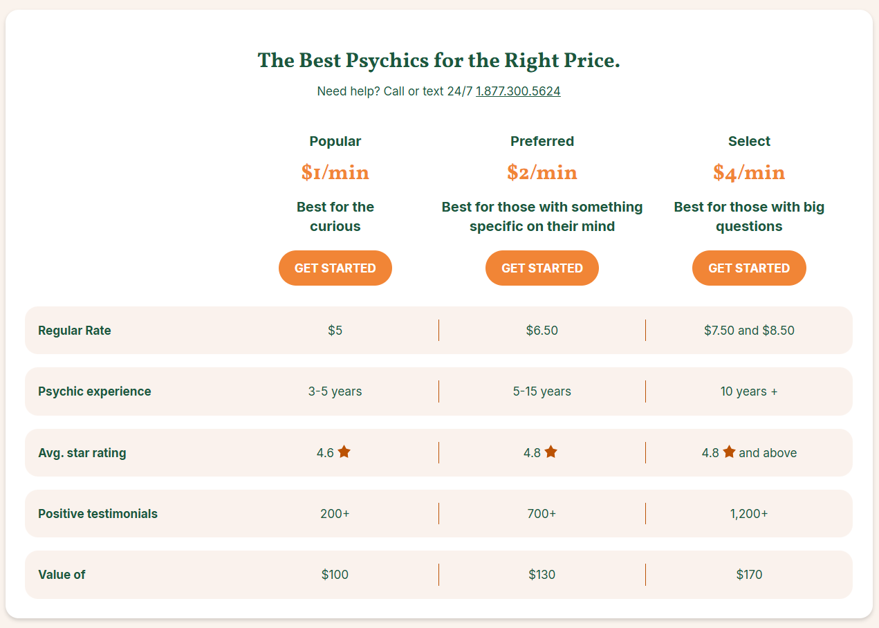 Shown below is our current introductory pricing for first-time customers. Please click here California Psychics® Pricing & Specials - Introductory Pricing Offers & Packages for Real Psychic Readings to select your introductory package and begin your journey!